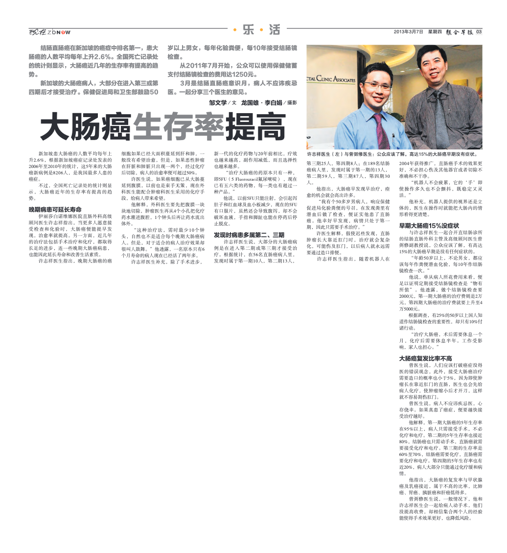 大肠癌生存率提高 – LianHe Zaobao